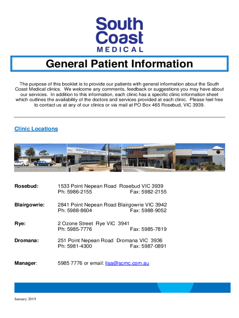 General Patient Information The purpose of this booklet is to provide our patients with general information about the South Coast Medical clinics. We welcome any comments, feedback or suggestions
