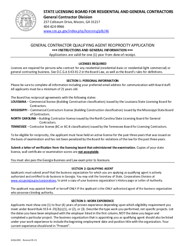 STATE LICENSING BOARD FOR RESIDENTIAL AND GENERAL CONTRACTORS General Contractor Division 237 Coliseum Drive, Macon, GA 31217 4044249966 www.sos.ga.gov/index.php/licensing/plb/46GENERAL CONTRACTOR