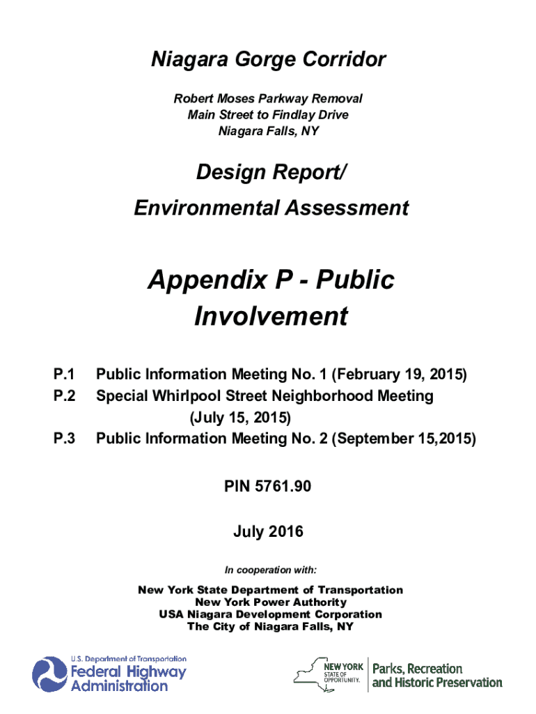 Niagara Gorge Corridor Robert Moses Parkway Removal Main Street to Findlay Drive Niagara Falls, Design Report/ Environmental AssessmentAppendix P Public Involvement P.1 P.2 P.3Public Information Meeting