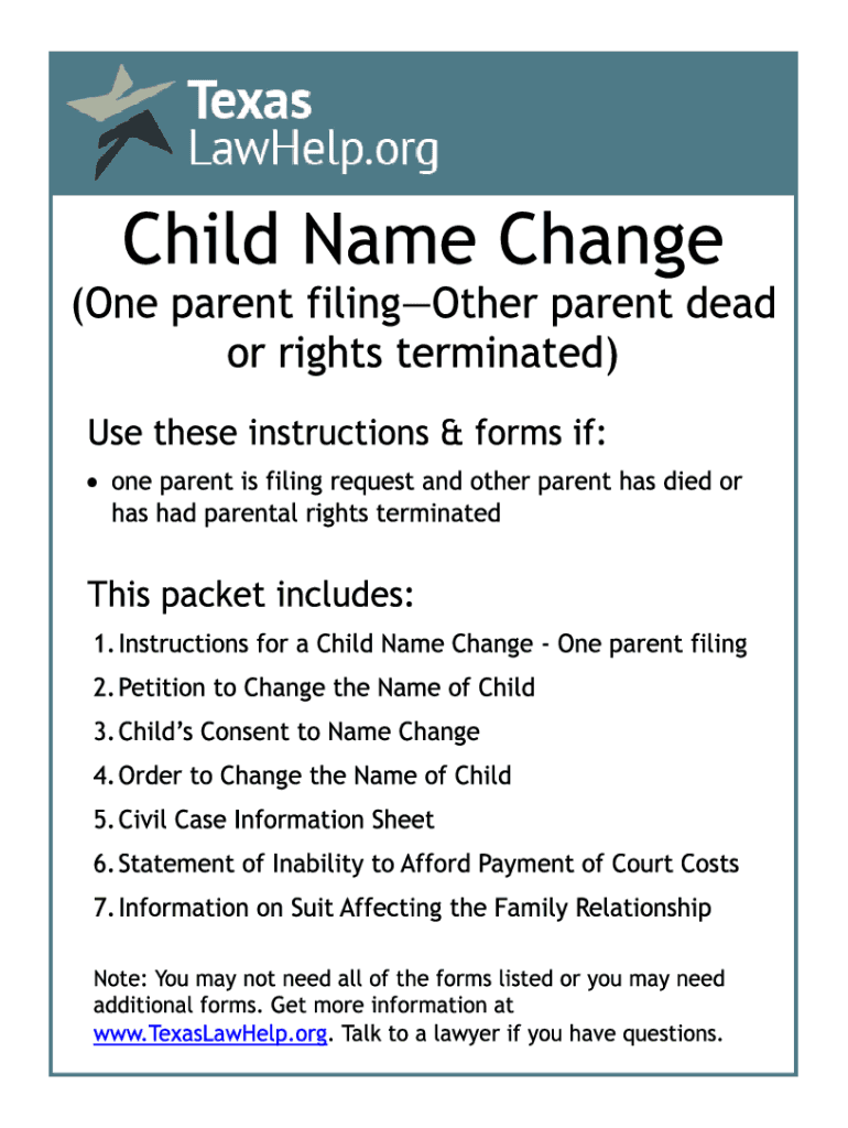 NOTICE: THIS DOCUMENT CONTAINS SENSITIVE DATA. Cause Number: In the Matter of the Name Change of:In the District Courteously Court at Law(Print the children current name first, middle, last.) County,