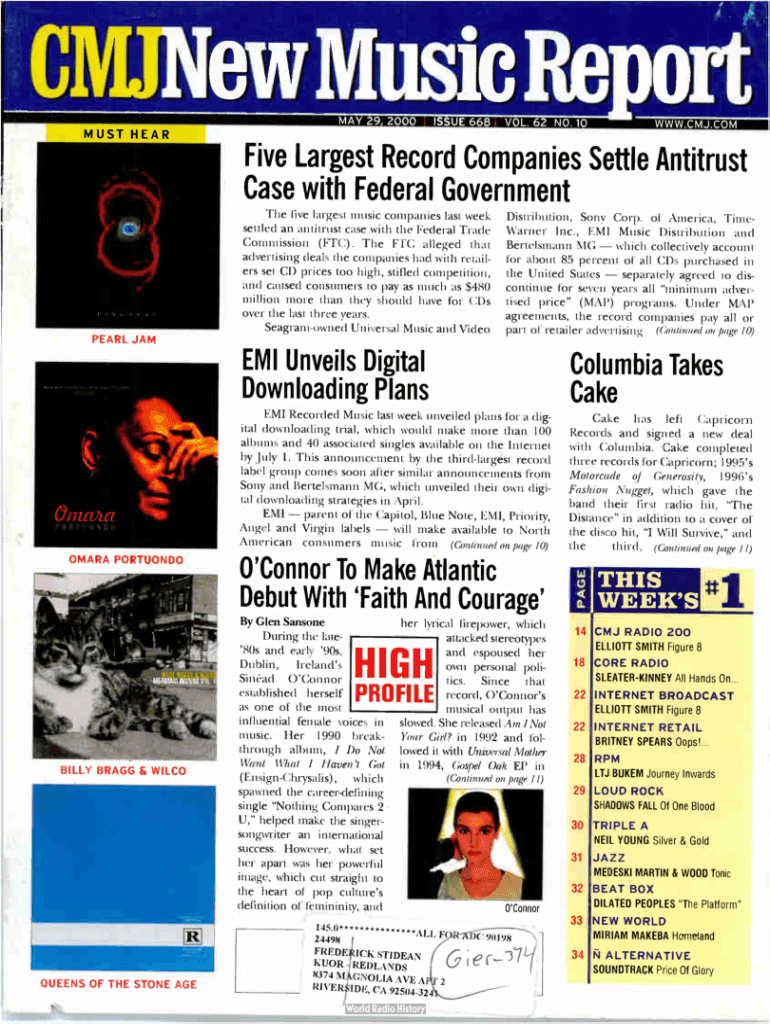 Milieu Music Re ORT: L.MAY 29 2000ISSUE 668VOL. 62 NO. locust HEAR WWW.CMJ. Combine The Largest Record Companies Settle Antitrust Case with Federal Governmental Jamie five largest music companies