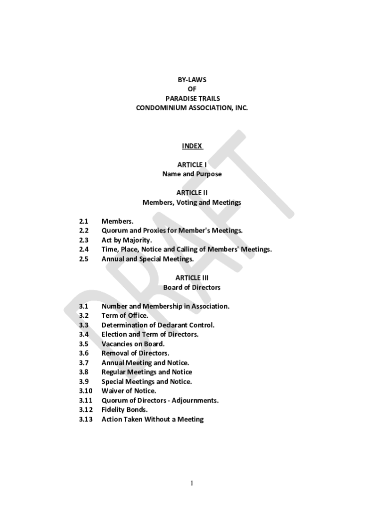 Get the free BY-LAWS OF PARADISE TRAILS CONDOMINIUM ASSOCIATION ...