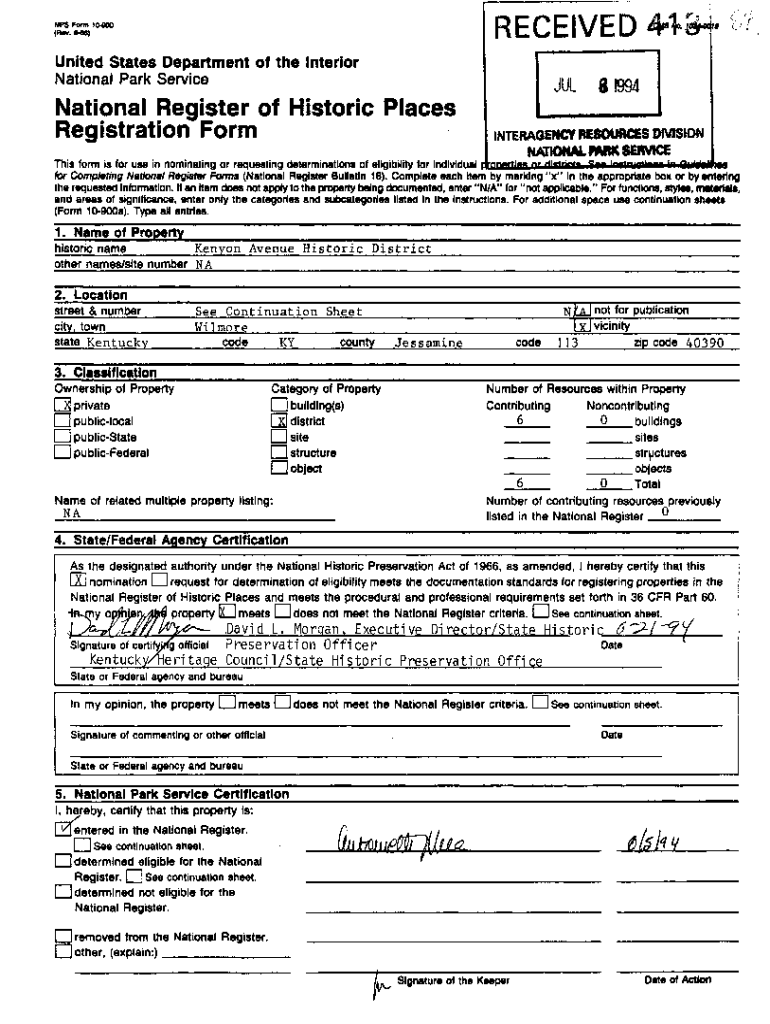 RECEIVED NPS Form 10×00United States Department of the Interior National Park ServiceJULNational Register of Historic Places Registration FormO81994INTERAGENCY RESOURCES DIVISION NATIONAL PARK Services