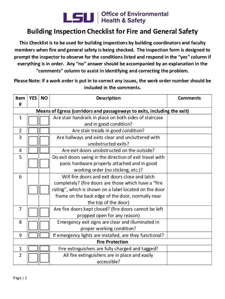 Get the free Building Inspection Checklist for Fire and General Safety