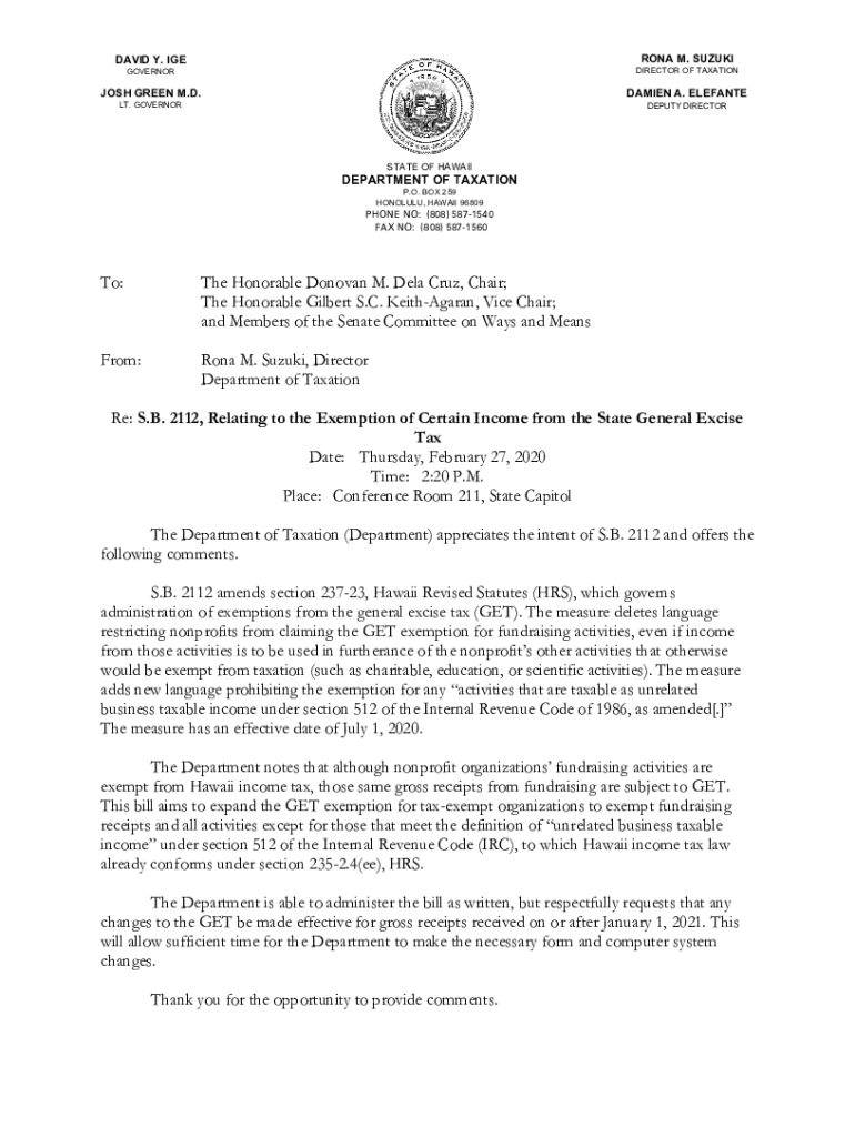 Get the free To: The Honorable Donovan M. Dela Cruz, Chair; The Honorable ...