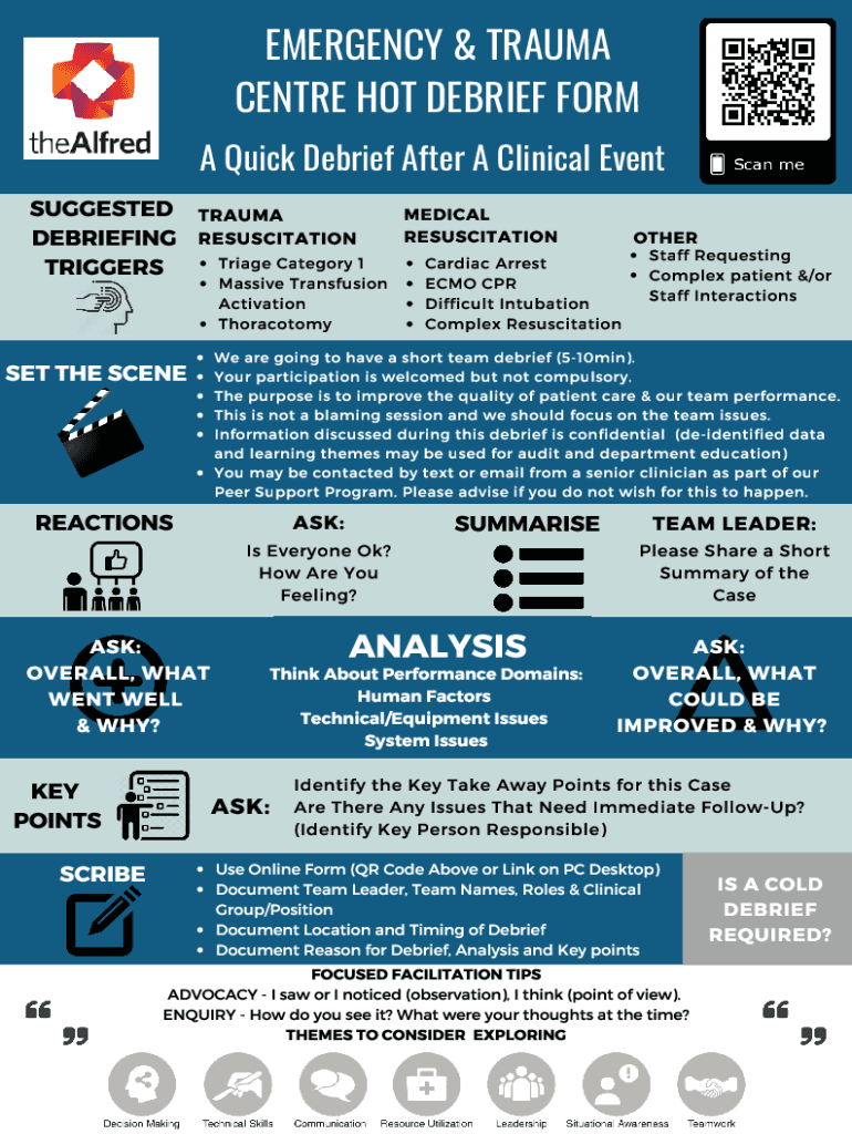 Get the free Emergency & Trauma Centre Hot Debrief FORM