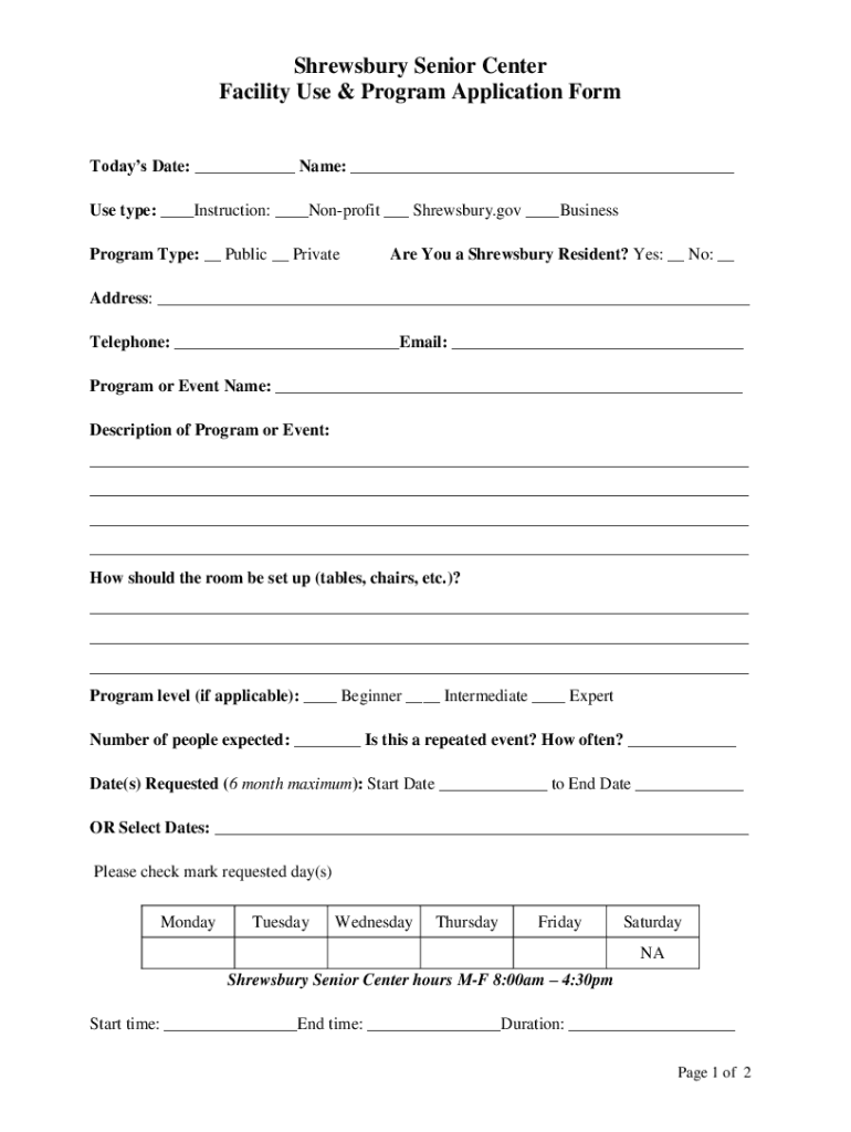 Get the free Shrewsbury Senior Center Facility Use & Program Application Form