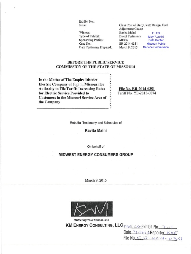 Exhibit No. Issue: Witness: Type of Exhibit: Sponsoring Parties: Case No. Date Testimony Prepared:Class Cost of Study, Rate Design, Fuel Adjustment Clause Kavita Main FILED Direct Testimony May