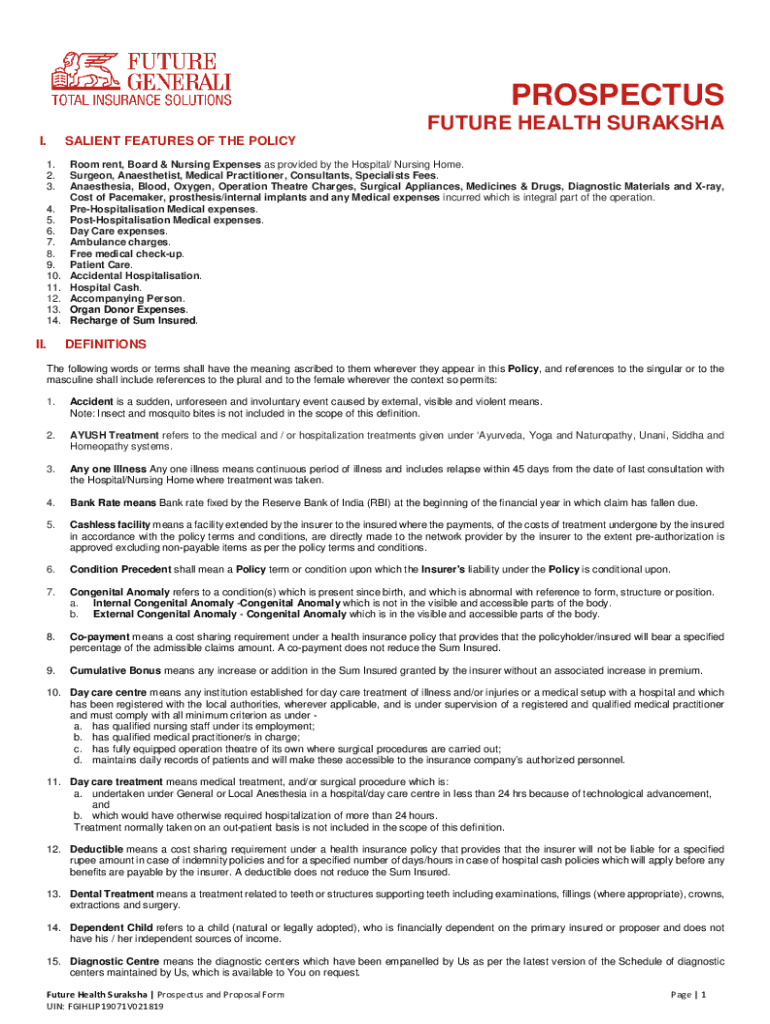Fill out your future health suraksha prospectus online with pdfFiller!