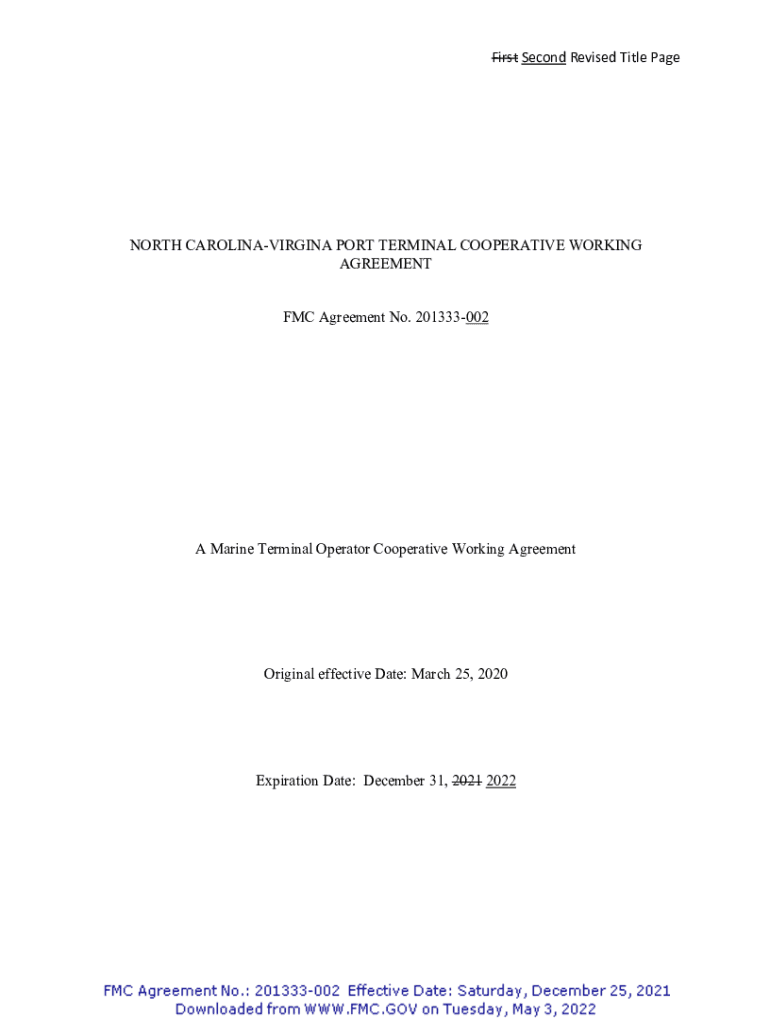 First Second Revised Title Edgeworth CAROLINAVIRGINA PORT TERMINAL COOPERATIVE WORKING AGREEMENT FMC Agreement No. 201333002A Marine Terminal Operator Cooperative Working AgreementOriginal effective
