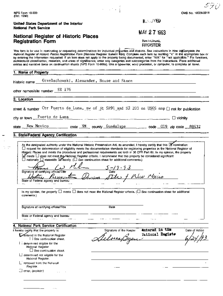 OMB No. 100240018NFS Form 10900 (Oct. 1990)MAY 2 7 1993National Register of Historic Places Registration Form * This form is for use in nominating or requesting determinations for individual properties