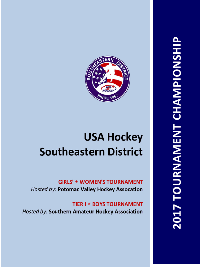 GIRLS WOMEN TOURNAMENT Hosted by: Potomac Valley Hockey Association TIER I BOYS TOURNAMENT Hosted by: Southern Amateur Hockey Association2017 TOURNAMENT CHAMPIONSHIP USA Hockey Southeastern District2017