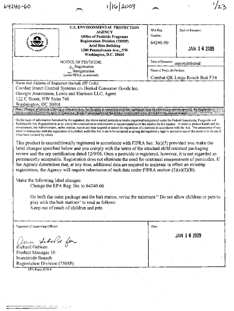 pdfFiller makes it easy to finish and sign us epa pesticide product online. It lets you make changes to original PDF content, highlight, black out, erase, and write text anywhere on a page, legally eSign your form, and more, all from one place. Create a free account and use the web to keep track of professional documents.