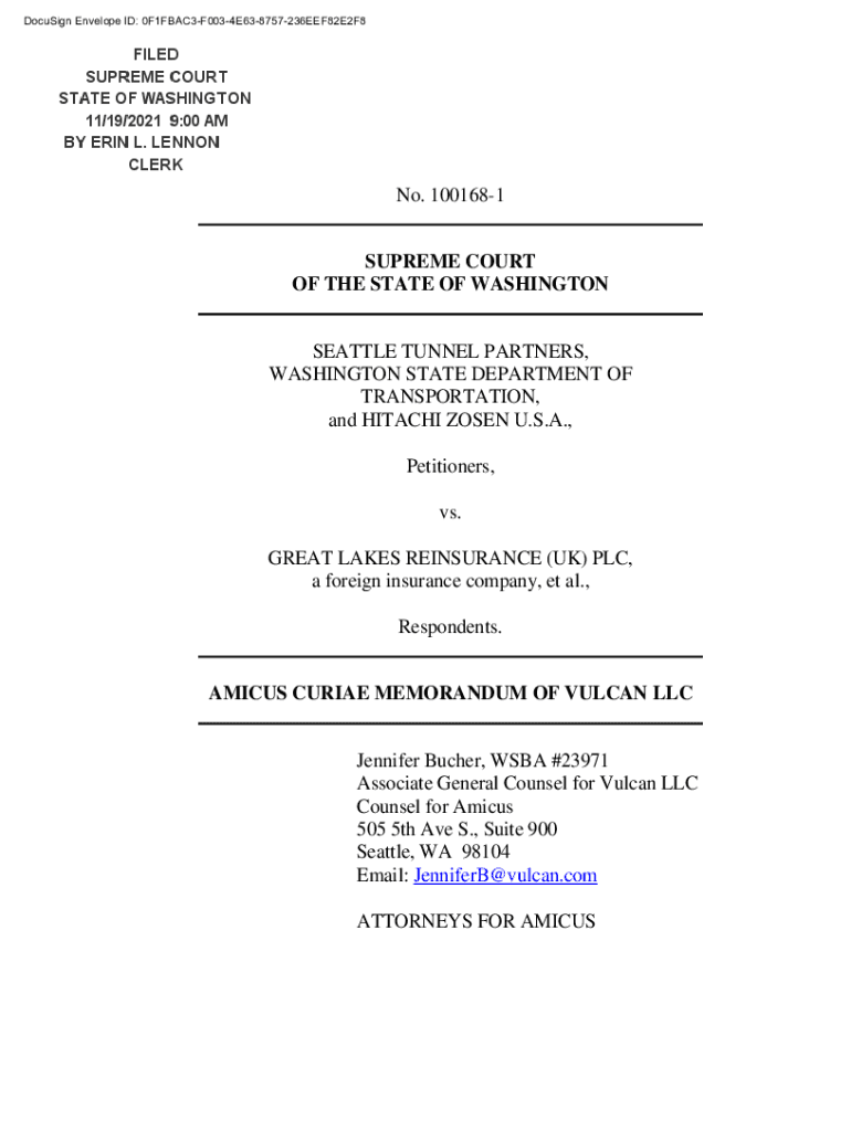 DocuSign Envelope ID: 0F1FBAC3F0034E638757236EEF82E2F8No. 1001681 SUPREME COURT OF THE STATE OF WASHINGTON SEATTLE TUNNEL PARTNERS, WASHINGTON STATE DEPARTMENT OF TRANSPORTATION, and HITACHI OPEN