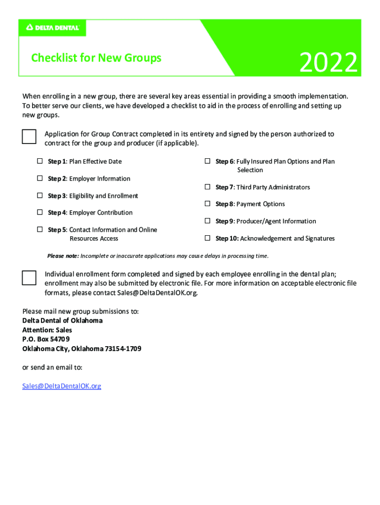 2022SELECTDelta Dental of Oklahoma Select2022NUMBER OF ELIGIBLE EMPLOYEES: 299 PROPOSED EFFECTIVE DATE: JANUARY DECEMBER 2022 (1ST DAY OF SELECTED MONTH)Delta Dental of Oklahoma Select for employer