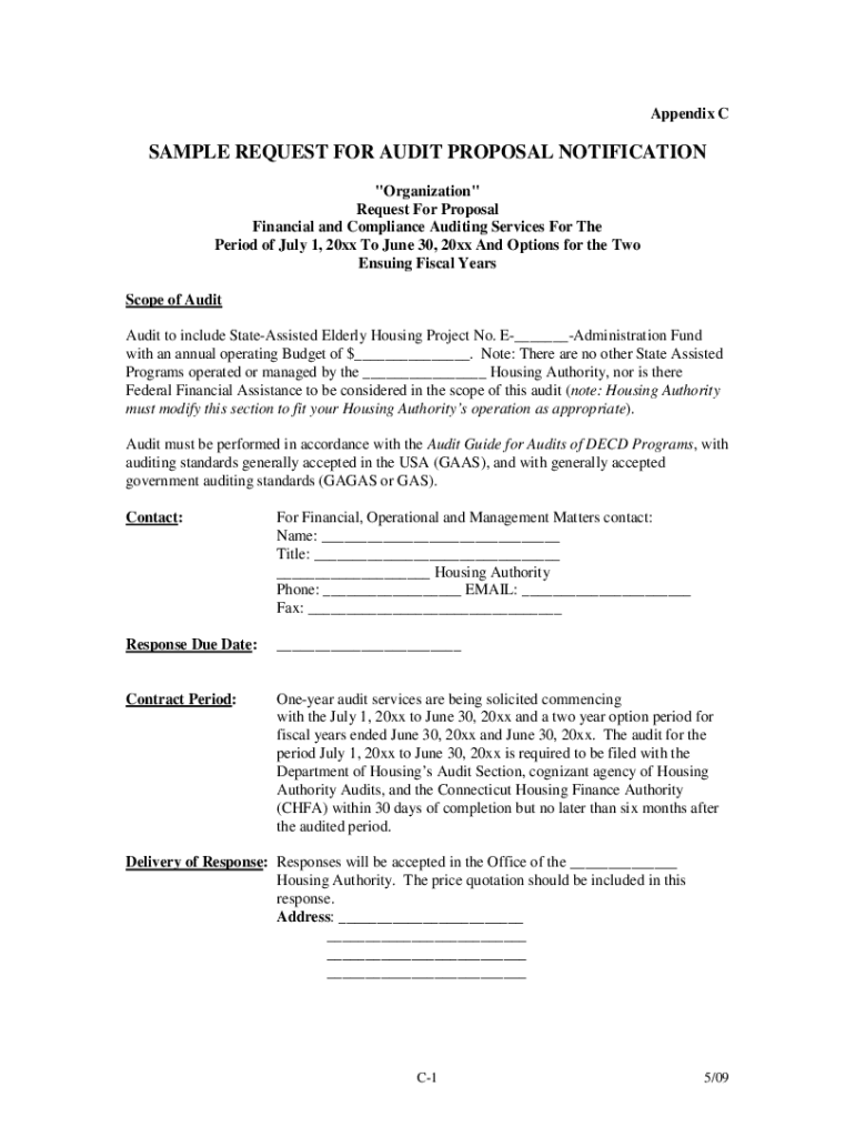 Appendix SAMPLE REQUEST FOR AUDIT PROPOSAL NOTIFICATION \” Organization\” Request For Proposal Financial and Compliance Auditing Services For The Period of July 1, 20xx To June 30, 20xx And Options