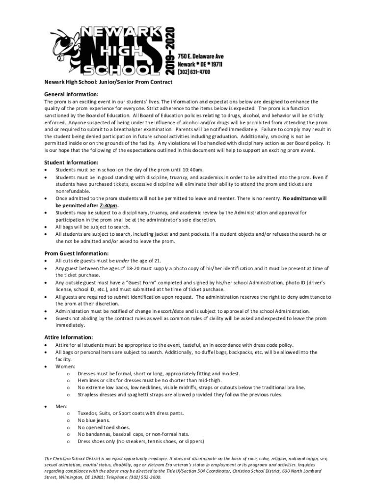 Newark High School: Junior/Senior Prom Contract General Information: The prom is an exciting event in our students lives. The information and expectations below are designed to enhance the quality
