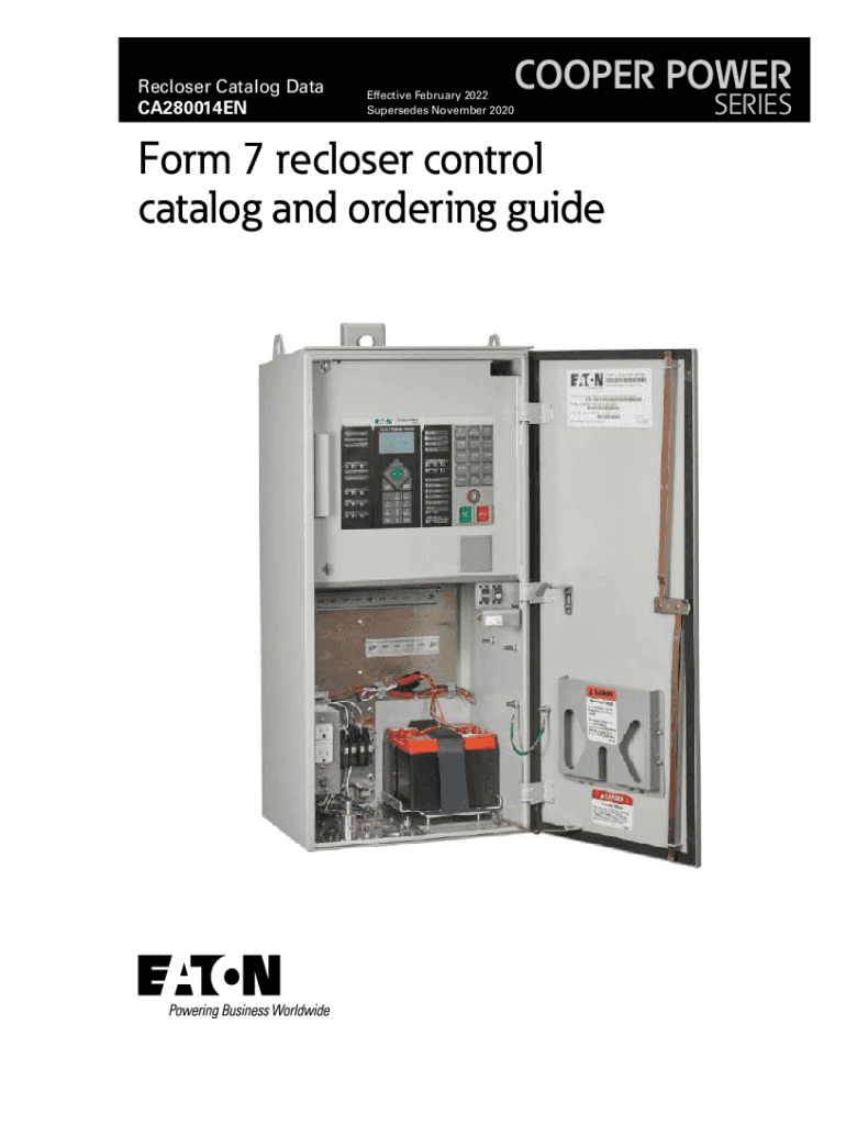 Re closer Catalog Data CA280014ENEffective February 2022 Supersedes November 2020COOPER Perform 7 rec loser control catalog and ordering guideSERIESRecloser Catalog Data CA280014ENForm 7 rec loser
