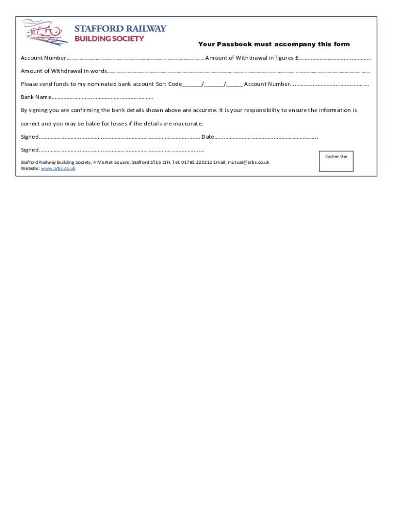 Your Passbook must accompany this form Account Number. Amount of Withdrawal in figures Amount of Withdrawal in words Please.