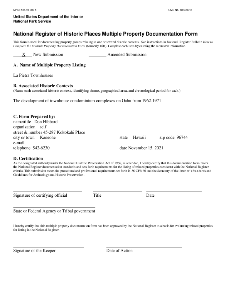 Get the free NPS Form No 1024-0018 United States Department of the ...