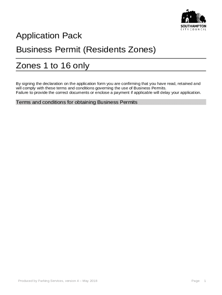 Business Parking Permit Application (Zones 1 to 16) template instructions