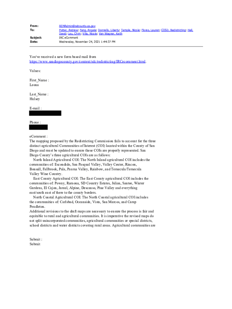 From: To: Subject: Date:Remain×county.ca.gov Potter, Andrew; Fang, Angela; Donnelly, Liberty; Temple, Nicole; Flores, Lauren; COST, Redistricting; Hall, David; LAU, Him; Villa, Nicole; Van Wagner,