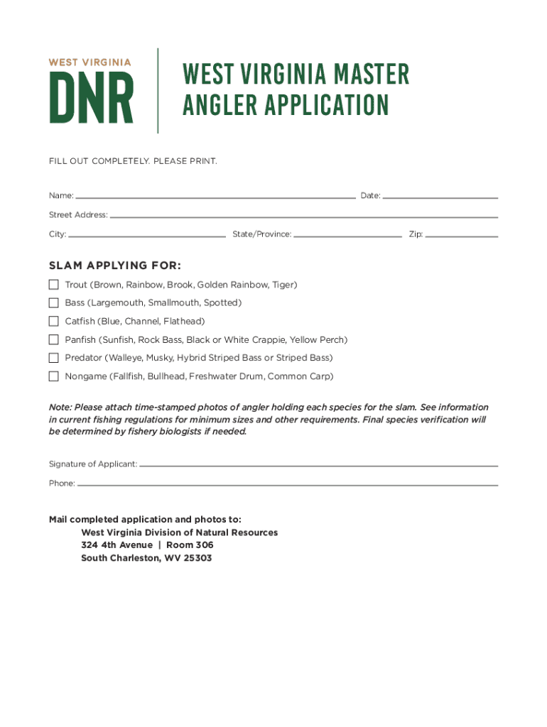 West Virginia Master Angler Program Beginning in 2022, the WV DNR implemented the Master Angler Program to promote fishing and recognize anglers for their accomplishments over a wide range of species