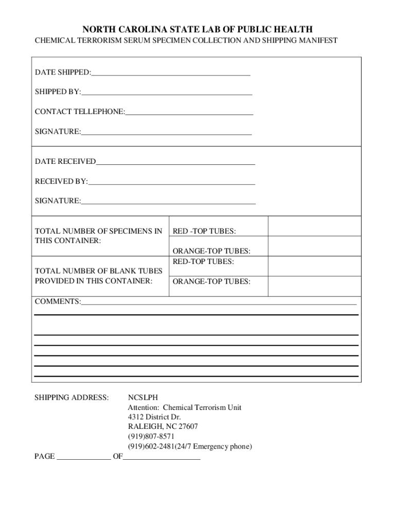 CHEMICAL TERRORISM SERUM SPECIMEN COLLECTION AND SHIPPING MANIFESTDATE SHIPPED:___