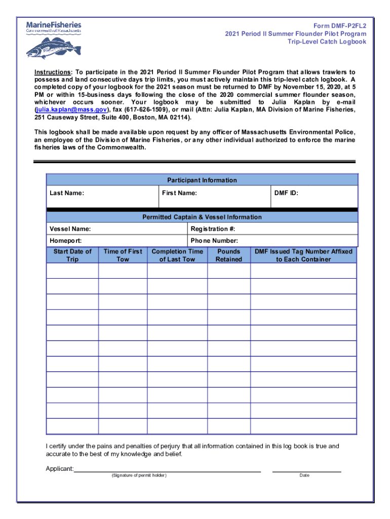 All commercial fishing vessels targeting summer flounder during the designated period ii pilot are required to file wwwmassgovdoc2021-p2-summer-flounder2020.