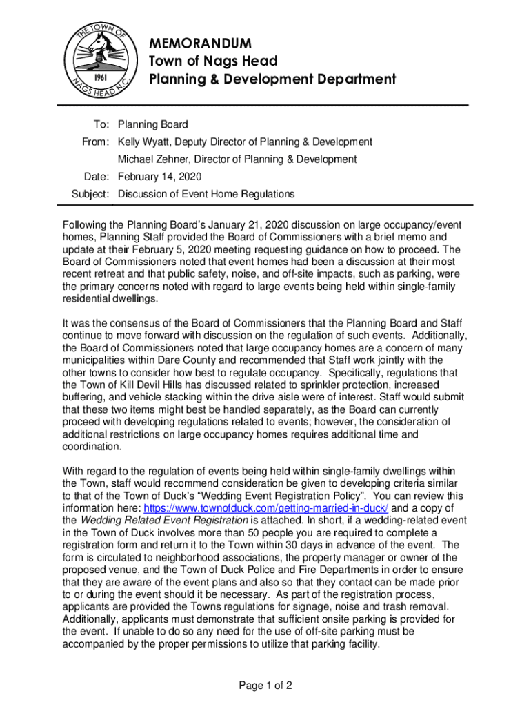 MEMORANDUM Town of Nags Head Planning & Development Department To: Planning Board From: Kelly Wyatt, Deputy Director of Planning & Development Michael Jenner, Director of Planning & Development Date: