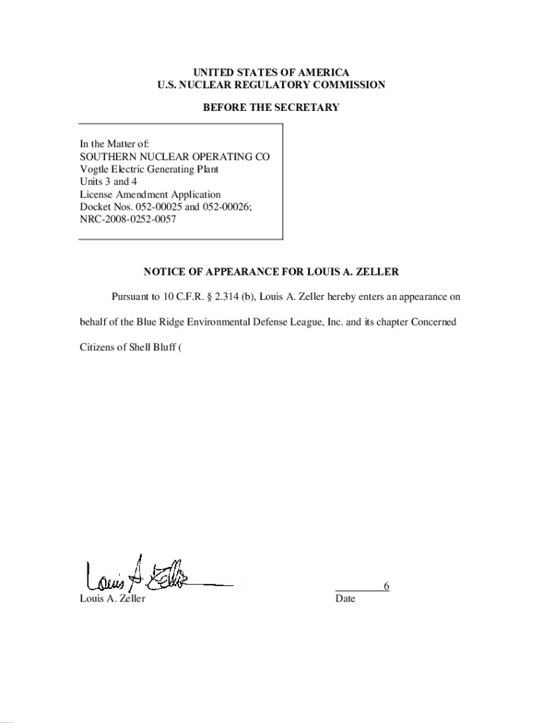 Get the free Notice of Appearance For Louis A Zeller.