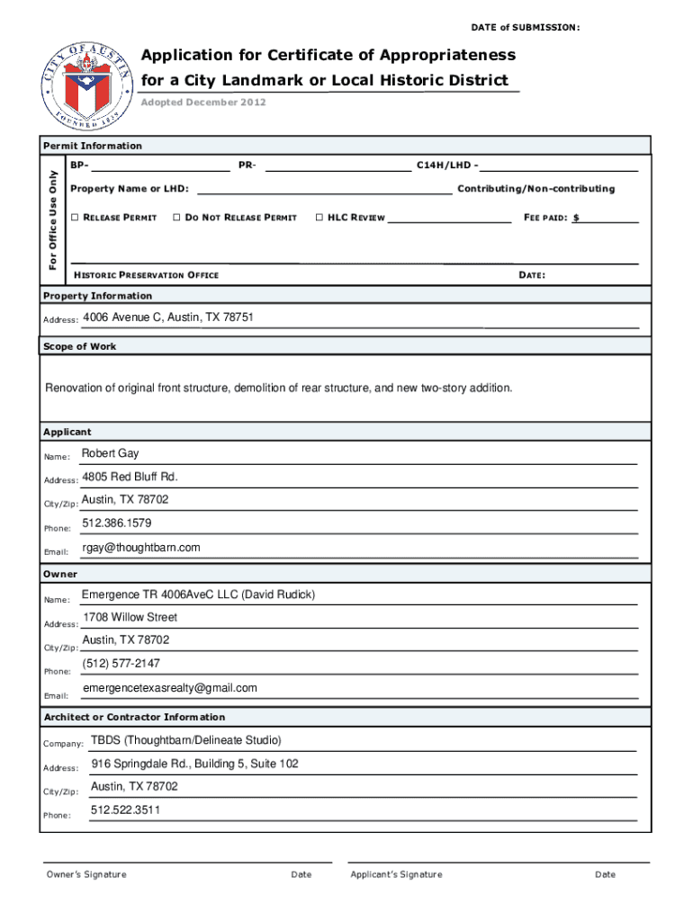 Get the free Application for Certificate of Appropriateness for a City Landmark or ...