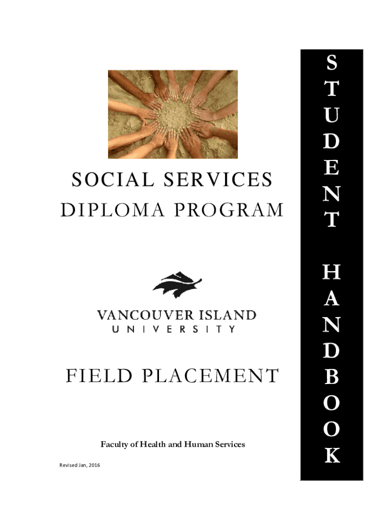 SOCIAL SERVICES D I P L O M A P RO G R A FIELD PLACEMENT Faculty of Health and Human Services Revised Jan,2016S T U D E N T H A N D B O O K Must KNOW MUST have Discontents GLOSSARYOFTERMS.................................................................................................................................................3