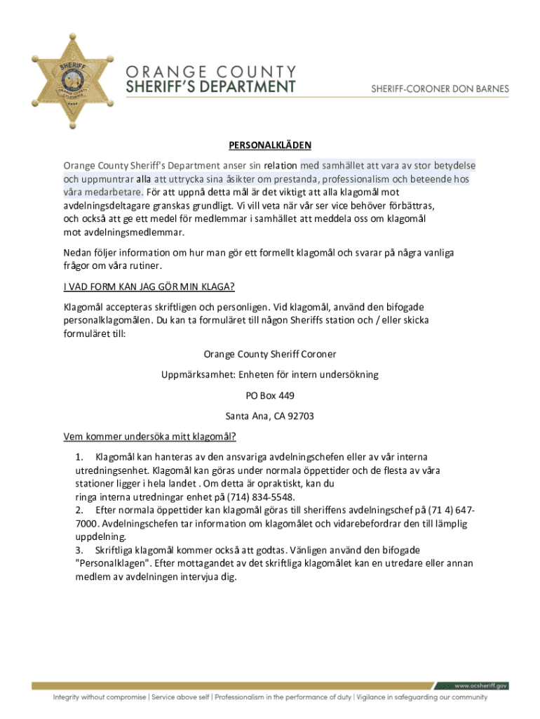 PERSONALKLDEN Orange County Sheriff\'s Department answer sin relation med smaller ATT vary av story betides och uppmuntrar alley ATT uttrycka sing sister on Preston, professionalism och between hos
