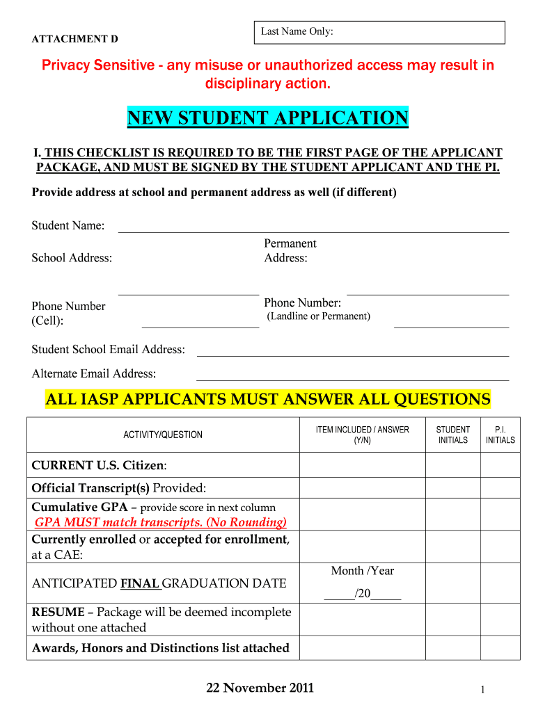 The New Student Application Form is a critical document utilized by students applying for specialized academic programs, particularly those in information assurance or cybersecurity. This form plays a vital role in the student application process by ensuring all necessary information is collected effectively. Both the student applicant and the Principal Investigator (P.I.) are required to provide signatures, which adds an additional layer of accountability and validation.