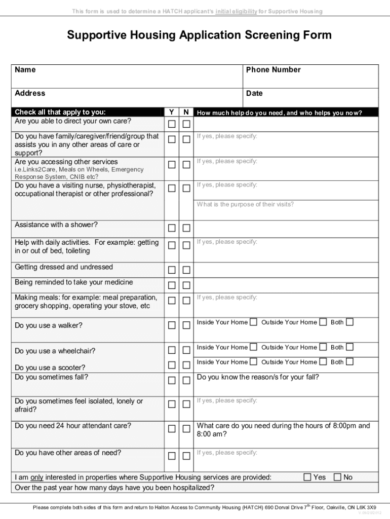 Get the free Supportive Housing Application Screening Form