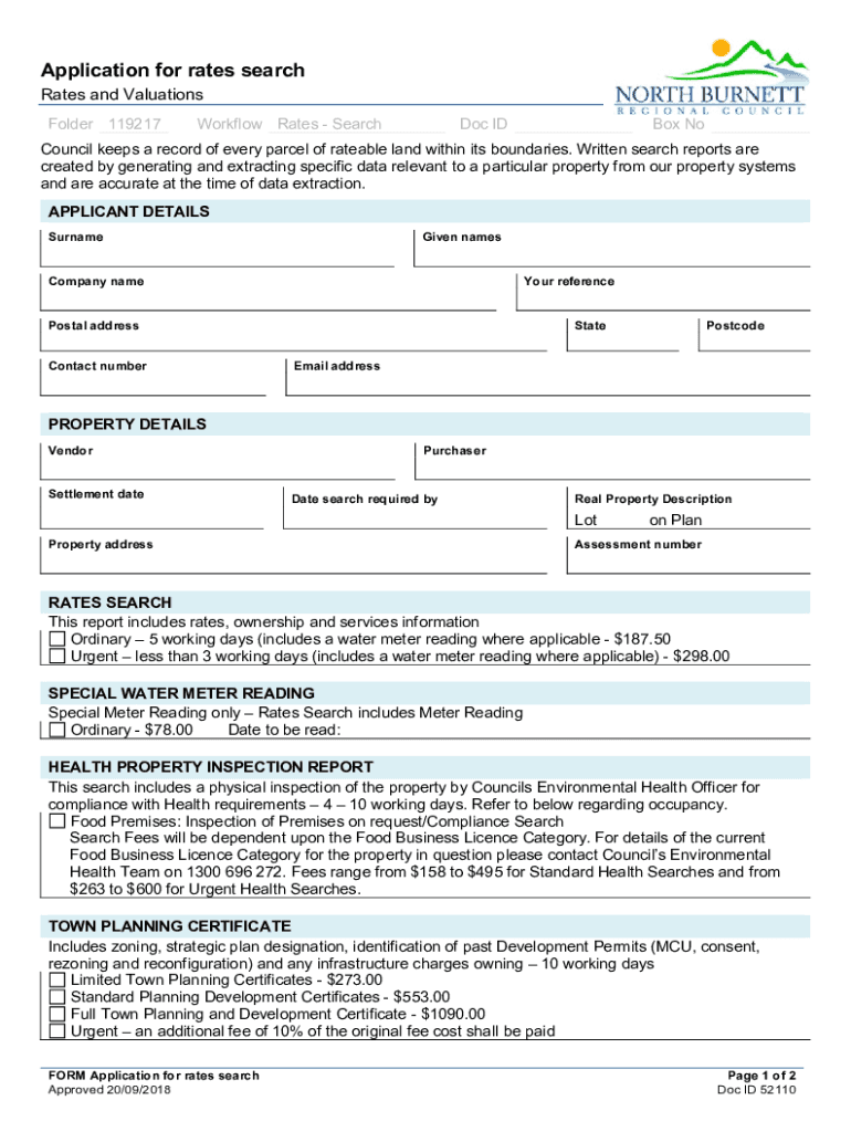 Application for rates search Rates and Valuations Folder 119217Workflow Rates Search Inbox Council keeps a record of every parcel of hateable land within its boundaries. Written search reports are
