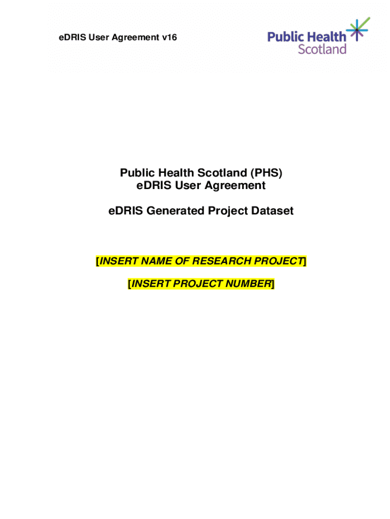 ERIS User Agreement v16Public Health Scotland (PHS) Eris User Agreement Eris Generated Project Dataset×INSERT NAME OF RESEARCH PROJECT] [INSERT PROJECT NUMBER×Eris User Agreement v16Table of Contents