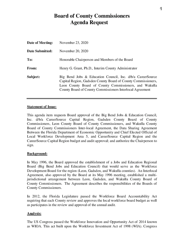 1Board of County Commissioners Agenda Sequestrate of Meeting:November 23, 2020Date Submitted:November 20, 2020To:Honorable Chairperson and Members of the Boardroom:Henry G. Grant, Ph.D., Interim County