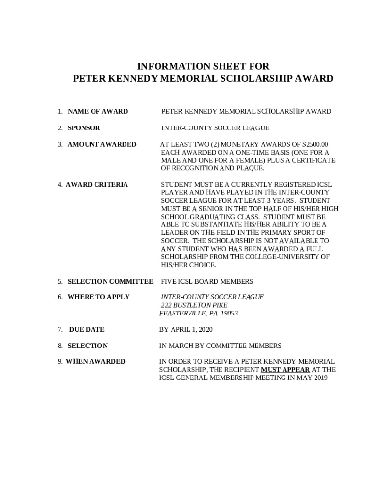 PETER KENNEDY MEMORIAL SCHOLARSHIP AWARD Doc Template ... word template: frequently asked questions