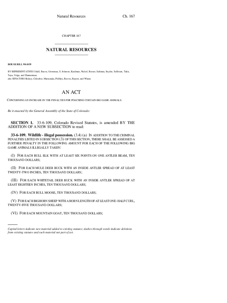 Natural Resources Ch. 167CHAPTER 167___ NATURAL RESOURCES ___ HOUSE BILL 981039 BY REPRESENTATIVES Udall, Bacon, Grossman, S. Johnson, Kaufman, Nichols, Reese, Salman, Snyder, Sullivan, Takes, Tuna,