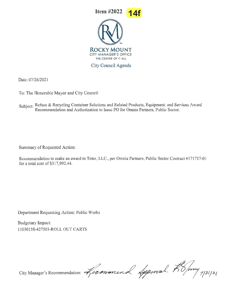 Get the free rockymountnc.govRockyMountNCDocumentsTO: The Honorable Mayor & City Council