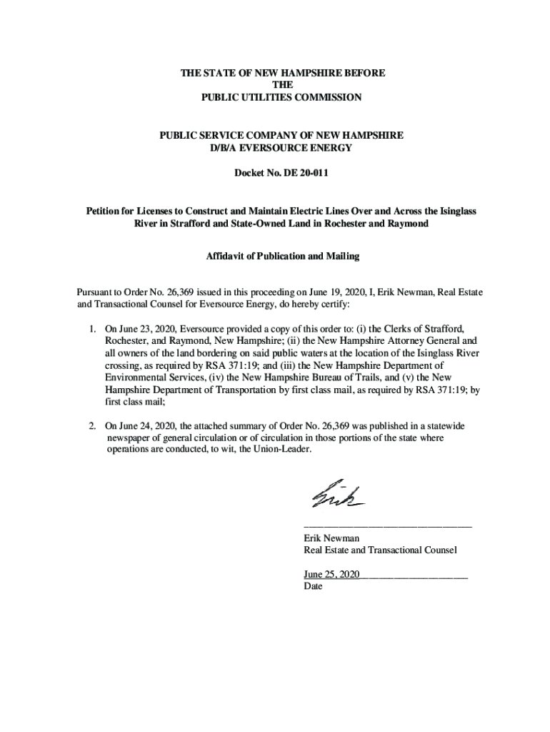THE STATE OF NEW HAMPSHIRE BEFORE THE PUBLIC UTILITIES COMMISSIONPUBLIC SERVICE COMPANY OF NEW HAMPSHIRE D/B/A RESOURCE ENERGY Docket No. DE 20011Petition for Licenses to Construct and Maintain Electric