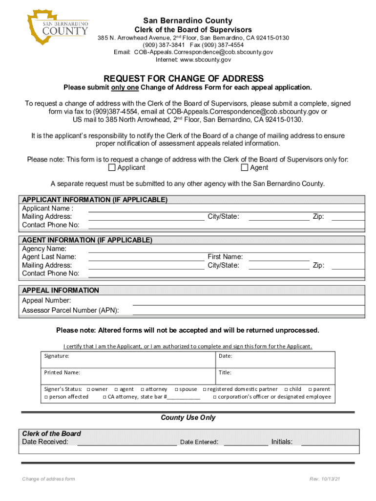 Get the free Request for Change of Address - cms sbcounty