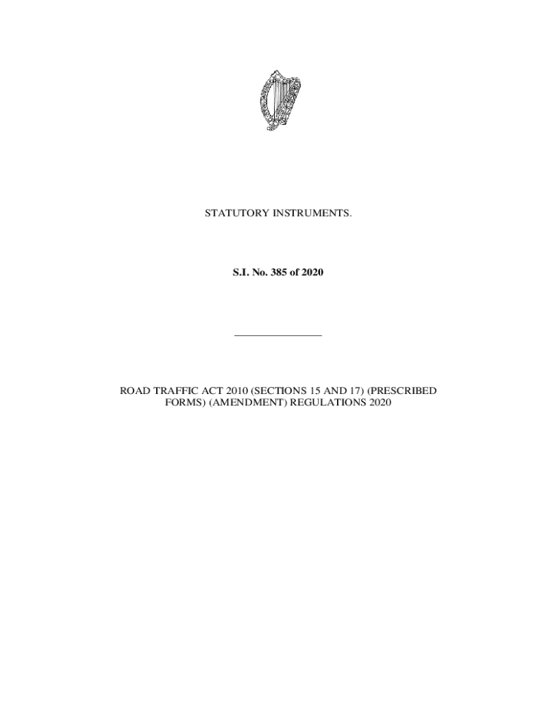 STATUTORY INSTRUMENTS. S.I. No. 385 of 2020___ROAD TRAFFIC ACT 2010 (SECTIONS 15 AND 17) (PRESCRIBED FORMS) (AMENDMENT) REGULATIONS 20202 ×385× S.I. No. 385 of 2020 ROAD TRAFFIC ACT 2010 (SECTIONS
