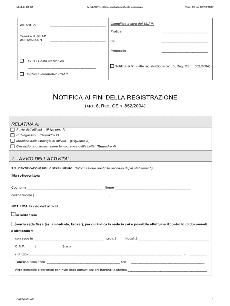 Modulo B4.01Mod.ASP Notified sanitarian unification nazionaleAll ASP DI___Tram ite IL SOAP del Commune did___Compilation a Cuba Del SOAP: Practice___Del___Protocol lo___PEC / Post electronica ___overs.