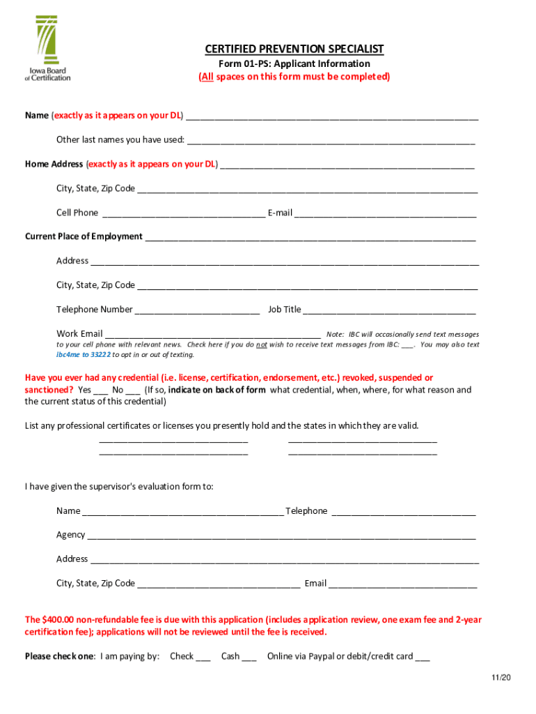 Dear Prevention Specialist Applicant:Thank you for your interest in prevention certification through the Iowa Board of Certification (IBC). IBC exists to enhance the quality of substance abuse services