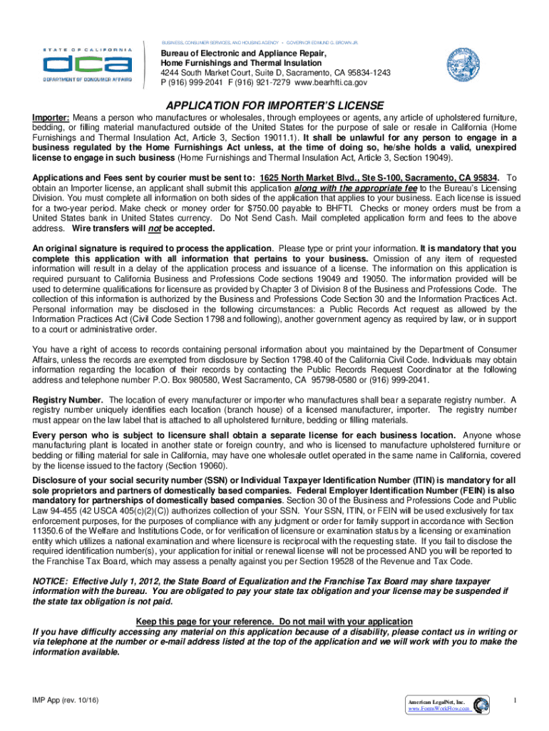BUSINESS, CONSUMER SERVICES, AND HOUSING AGENCY GOVERNOR EDMUND G. BROWN JR. Bureau of Electronic and Appliance Repair, Home Furnishings and Thermal Insulation 4244 South Market Court, Suite D, Sacramento,