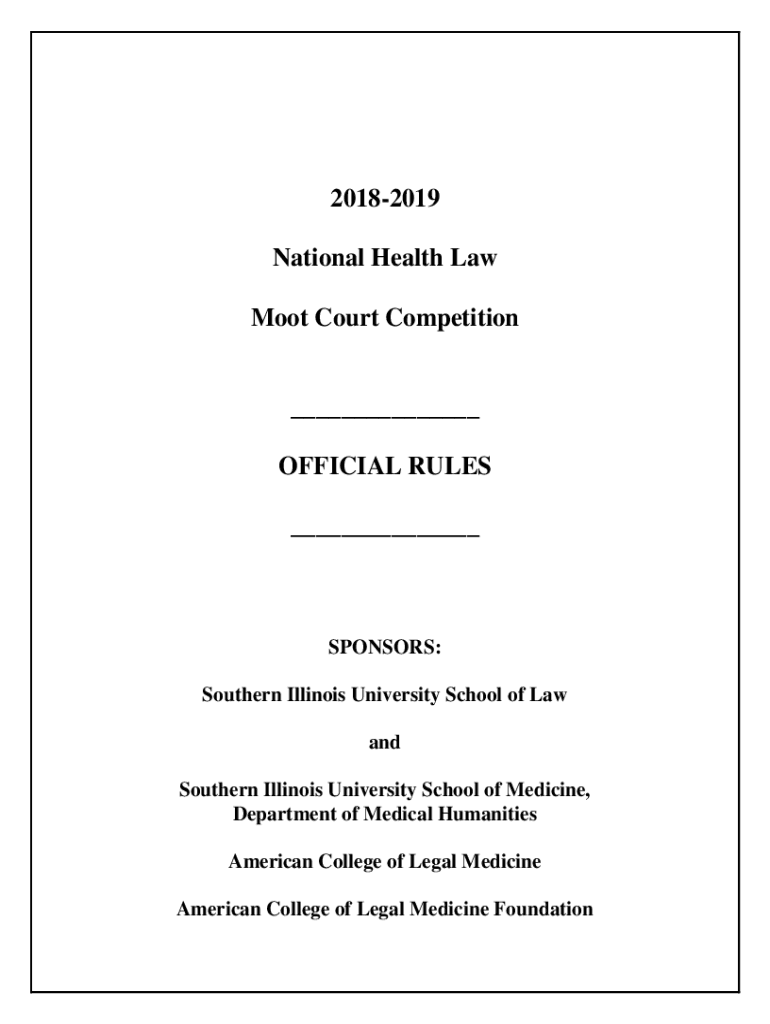 20182019 National Health Law Moot Court Competition___ OFFICIAL RULES ___SPONSORS: Southern Illinois University School of Law and Southern Illinois University School of Medicine, Department of Medical