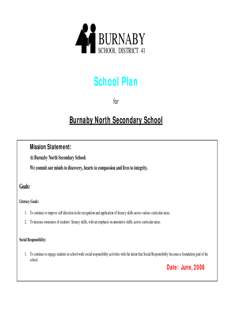 BURNABYSCHOOL DISTRICT 41School Plan Burnaby North Secondary School Mission Statement: At Burnaby North Secondary School: We commit our minds to discovery, hearts to compassion and lives to integrity.